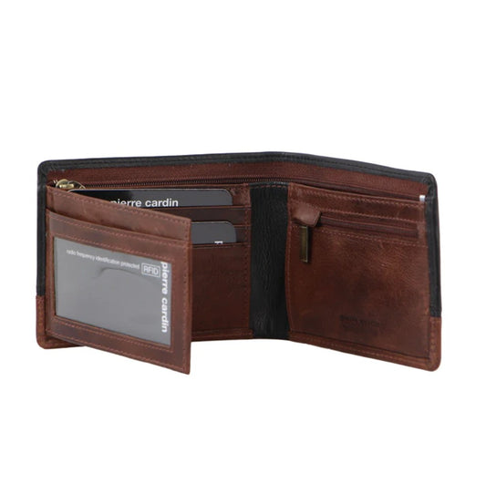 PIERRE CARDIN LEATHER 2-TONE MENS TRI-FOLD WALLET