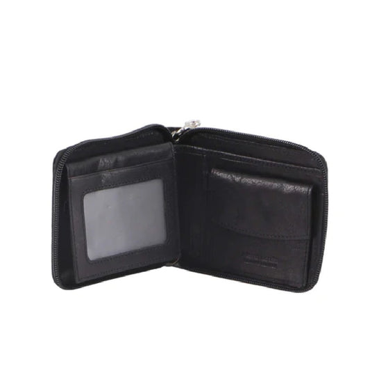 PIERRE CARDIN MENS ZIP-AROUND LEATHER WALLET WITH CHAIN