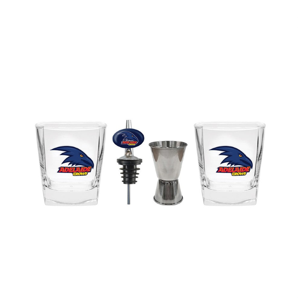 AFL 2x GLASSES, JIGGER & POURER SET ADELAIDE CROWS