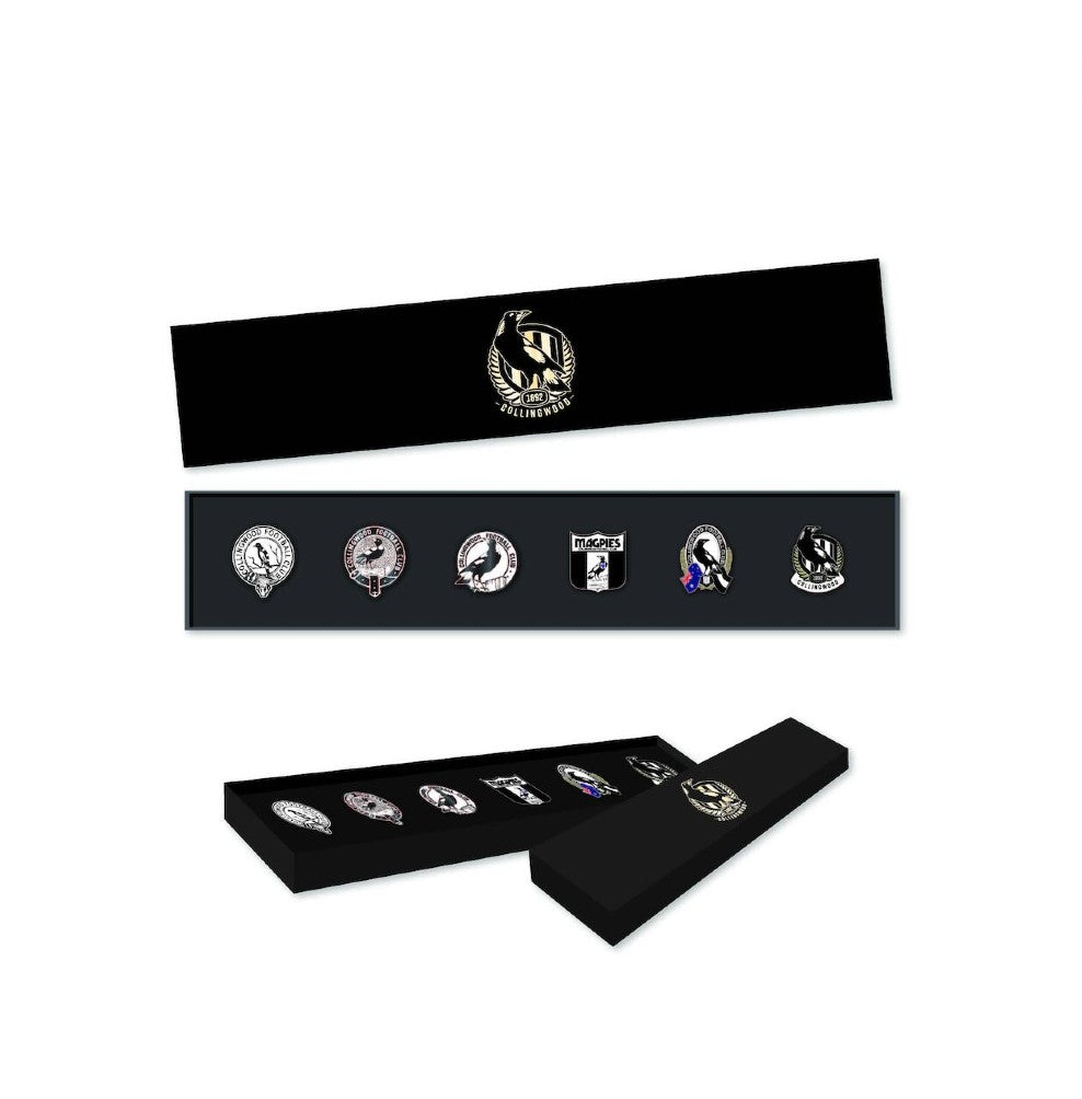 Here's a great collection of classic memorabilia to add to your fan gear - a Boxed Set of 6 Collingwood Metal Pins.