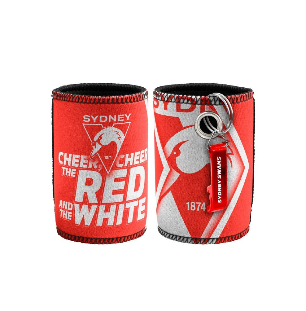 SYDNEY SWANS AFL STUBBY HOLDER WITH BOTTLE OPENER